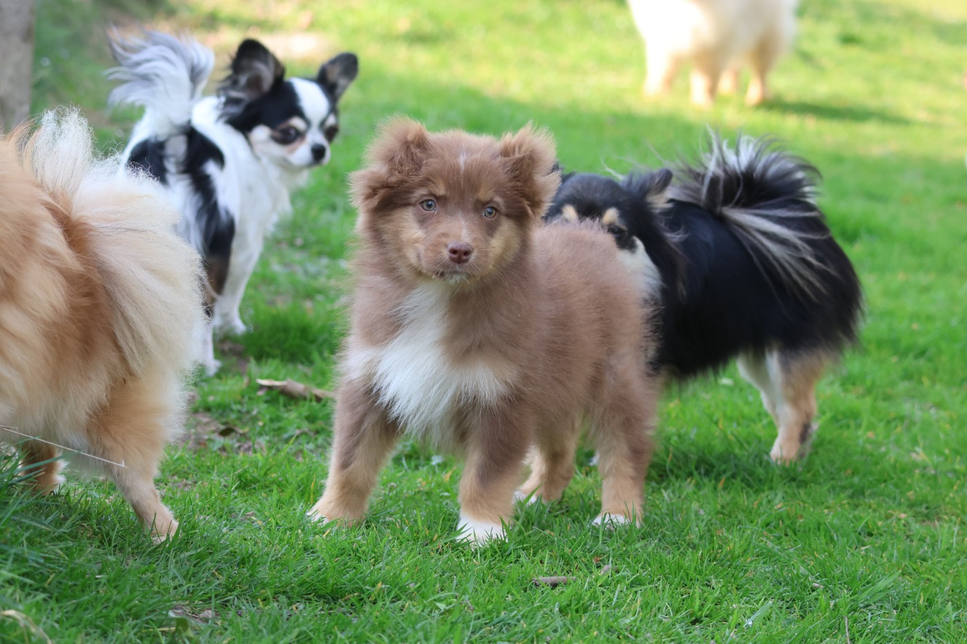 femelle rouge tricolore, queue naturelle BISCOTTE est une petite femelle toute douce, prudente avec les autres chiens, elle cherche le contact pour jouer, elle aime les enfants (ça joue) et les chats, habituée aux bruits intérieurs et extérieurs, elle est très sociable plus de photos ? son album est sur le groupe facebook de l'élevage plus d'infos : ISABELLE au 0650506364