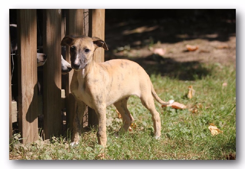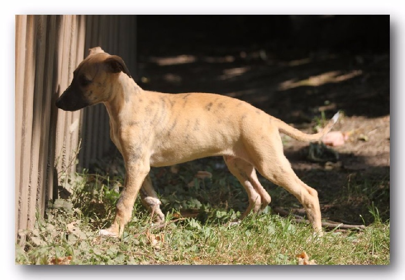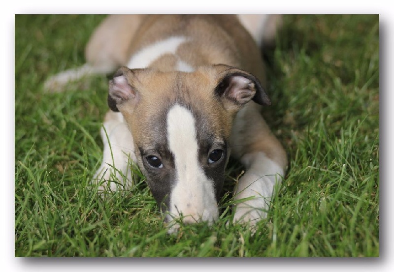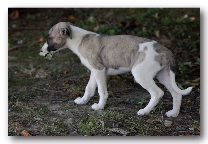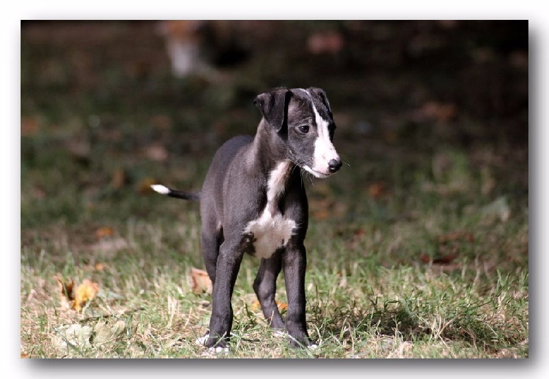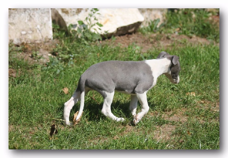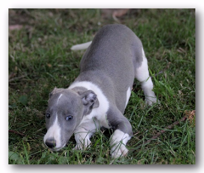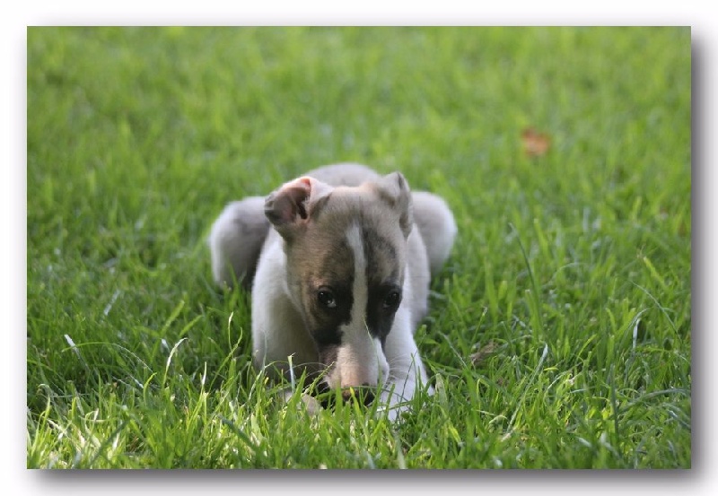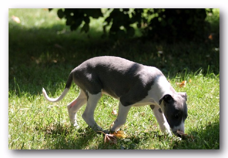 lilou est une petite louloute joyeuse, gaie mais très "princesse" dans son attitude, évite l'herbe mouillée avec dégout ... une whippet quoi !
